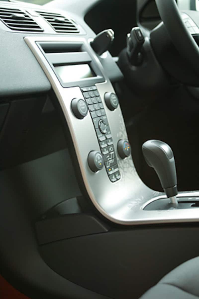インテリアの最大の特徴は、フリーフローティング・センター・スタック。最近のボルボに共通の、スタッキング・チェアのような、厚さわずか25mmの浮いたセンターコンソールだ。リモコンのように配置された操作スイッチの裏側には、オーディオやエアコンのコンポーネントはなく、小物を置けるオープンスペースになっている。モダンなファニチャーのような、スカンジナビアンデザインだ。素材は暖かいスカンジナビアン・ファニチャーのようなノルディックライトオーク・ウッドパネルやアルミニウムパネル、写真のサーフパターンのアルミニウムパネルから選べる。C30からボルボは、本木目やアルミニウムなど、本物の素材の使用を拡大していくようだ。