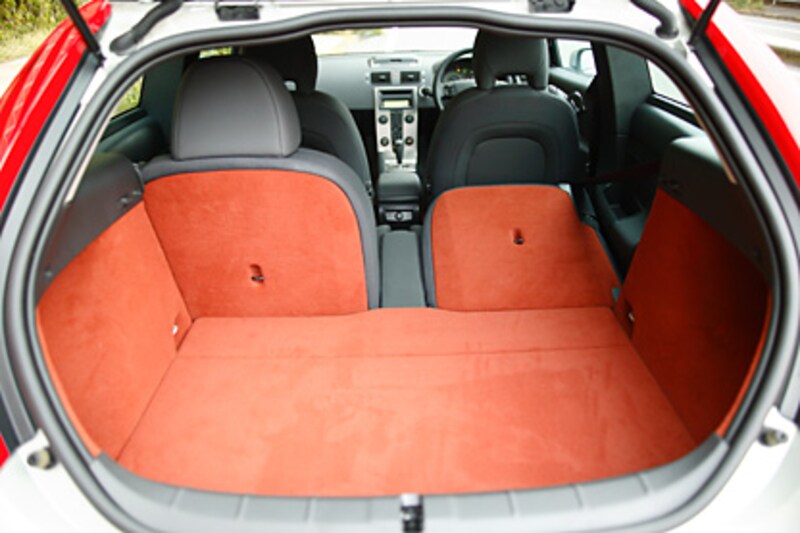 | リアカーペットとのコントラストも美しいインテリア。ラゲッジスペースは、最大894L、長さは1500mm弱。 |