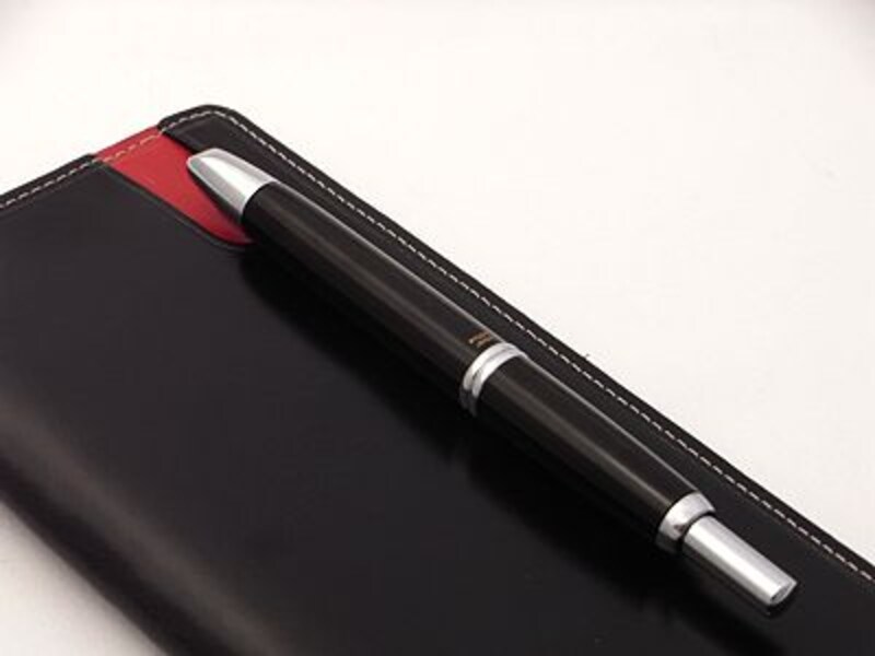 | ペンのクリップを表紙のスリーブに挿し込むと、しっかりとペンがホールドされる |