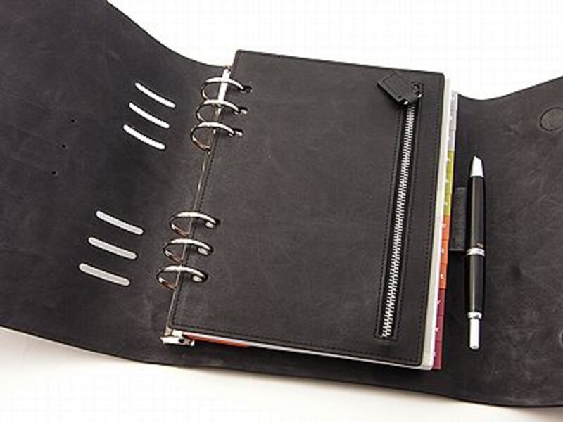 そんなNAVAのシステム手帳は、昨今のコンパクトの流行に背を向けるように、A5サイズのシステム手帳の中でもかなり大きく作られています。ただ、もう一つの流行であるシンプルなデザインという点では、これ以上ないほどシンプルなルックスです。ただ、リングが表に露出するというデザインは、シンプルな中に迫力を生んで、とてもカッコ良いです。この「少しの過剰」が、便利と機能美だけでは出せない味わいというものです。