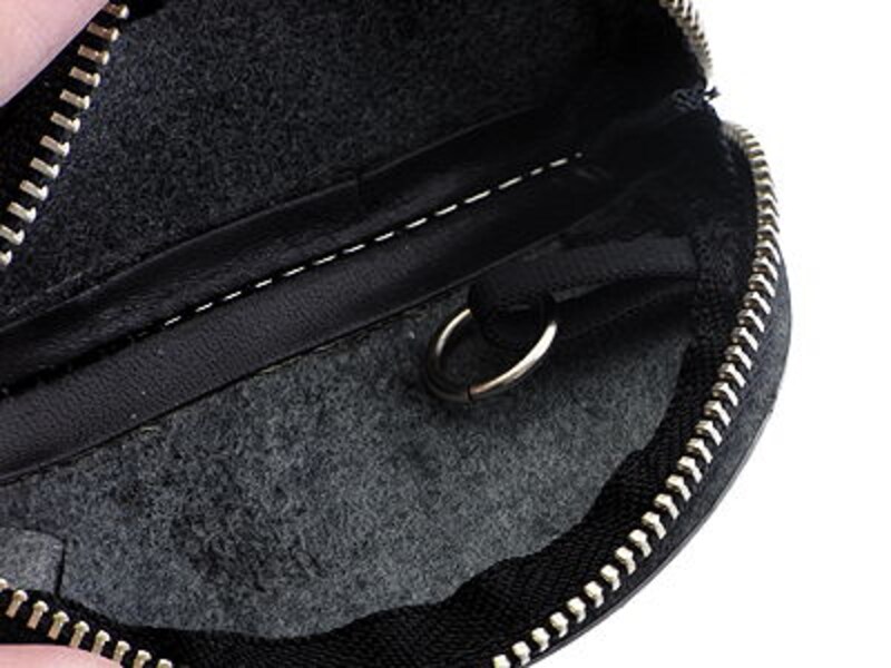 また、サイズが良いのか、中を見るとき、手のひらの中で丁度良い具合に開くので、小銭が探しやすく取り出しやすいのです。これは、半円形の形状のため、内 部が浅めになっていてアクセスしやすいためでもあります。実際使ってみて、その可愛いルックスに似合わない実用性に少し驚いてしまいました。内部に、キー リングが付いているのも中々便利。鞄やケースの鍵を付けておくのに重宝しました。