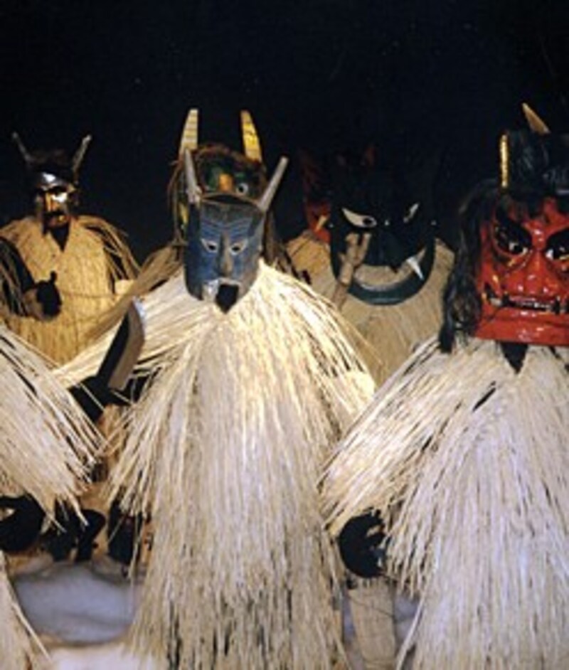 オーストリアの聖ニコラウス祭のお祭りでは、シャープと呼ばれる麦わらのかぶりものをした人たちと、日本の男鹿半島の「なまはげ」のような面をつけたクランプースたちがムチを持って行進します。麦は豊穣を、仮面はこの世でないこと、つまり魔物を意味しています。ムチで叩く行為は木の命を人に移すためだといわれています。