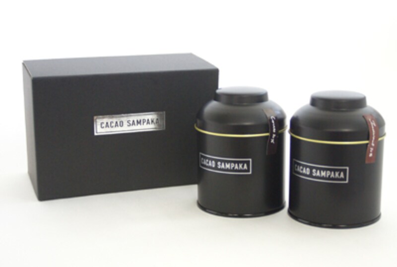 | ホットチョコレートドリンク用フレークセット 2,070円(税込) トラディショナル70%、コルテス80%の2種各100g缶入りを専用ボックスに入ったものはプレゼント用に。 |