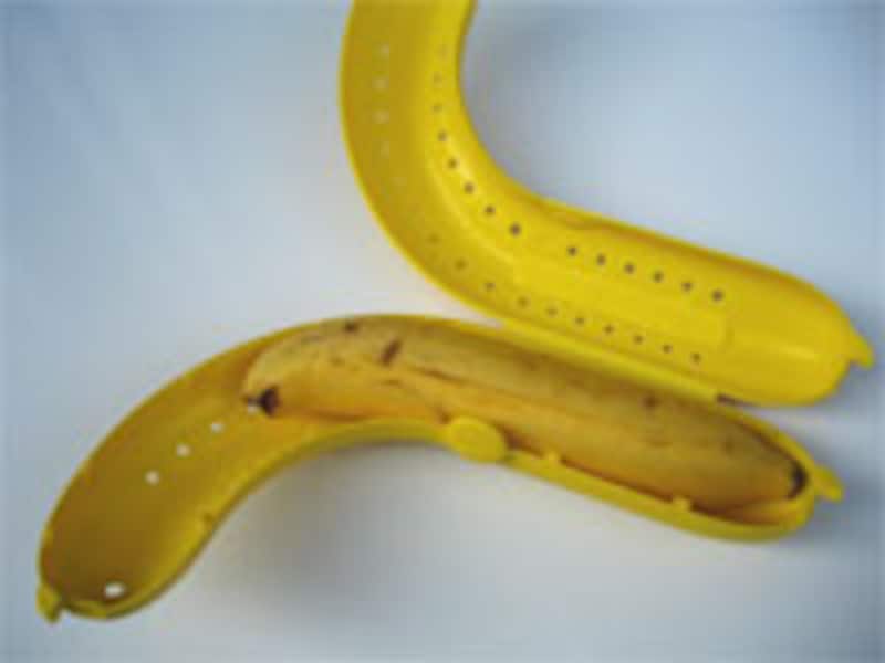 バナナと一口に言っても、その大きさや形は千差万別。微妙に異なっています。ところがこの「バナナガード」は、商品説明によればバナナのおよそ9割が納まる形になっているとのこと。計算されたこのカーブに加え、サイズを問わず収納できるよう、この大きさにになっているのでしょう。