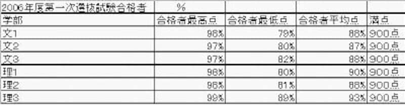 | センター試験では9割近くの得点率を求められる(『代々木ゼミナール東大入試データ』より) |