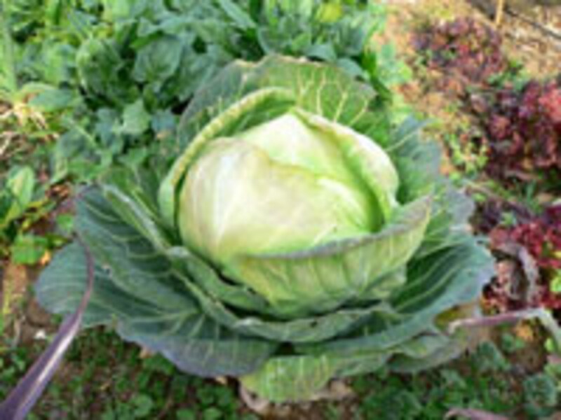 そして、まさか芯から育てたとは見られない、ちゃんとしたキャベツが育ちました!!収穫して生で味わうと、甘くて美味しいキャベツに育ってました。