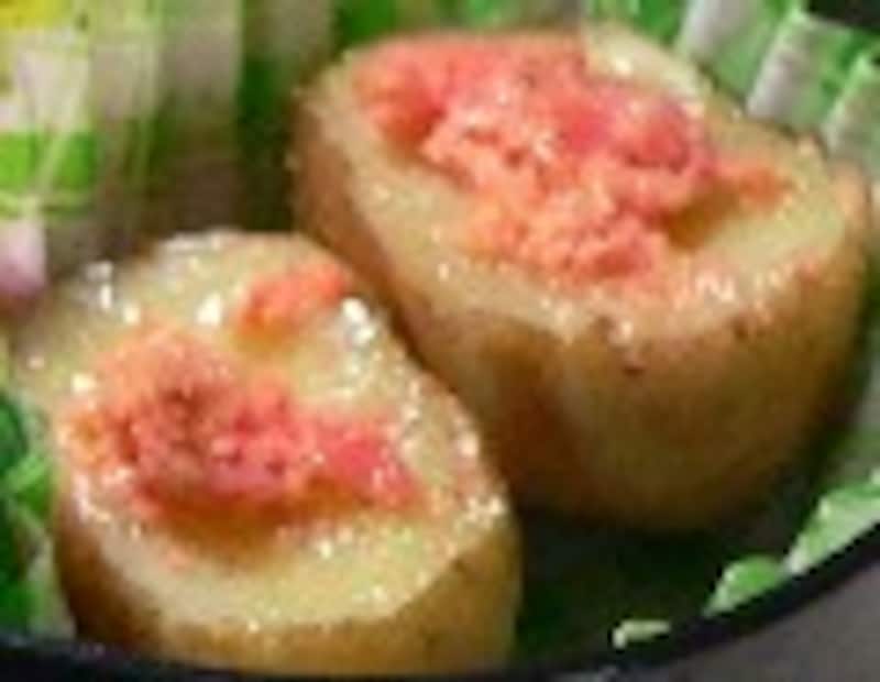 新じゃがをよく洗い、そのまま電子レンジにかける。柔らかくなったら半分に切り、マヨネーズを薄くぬって