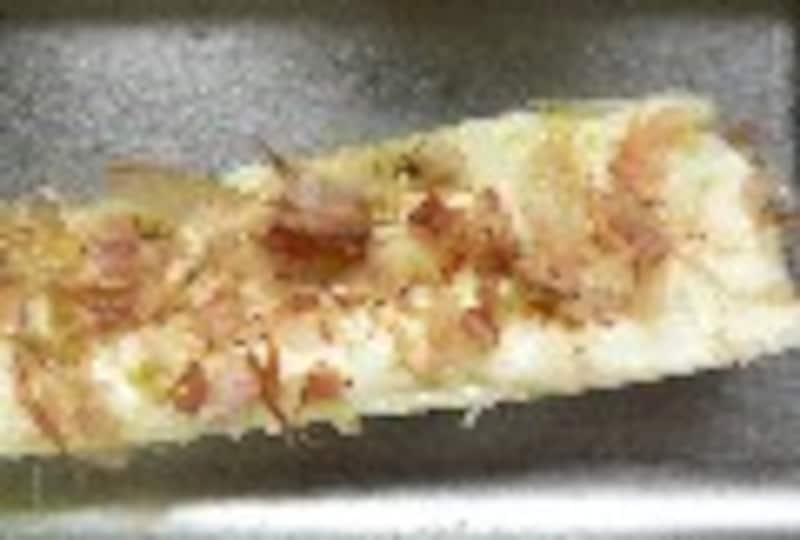 タラコをぬりつけ、もう一度電子レンジにかけ、タラコに火を通す。