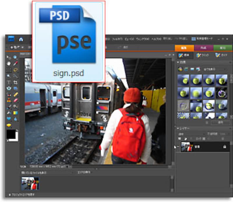 画像ファイルに画像編集ソフトが関連づけされている場合は、そのファイルをダブルクリックすると画像編集ソフトが起動してから画像が開きます。画像編集ソフト固有のファイルの場合、たとえばPhotoshop Elementsでは「.psd」のファイルはこれで開くことができます。