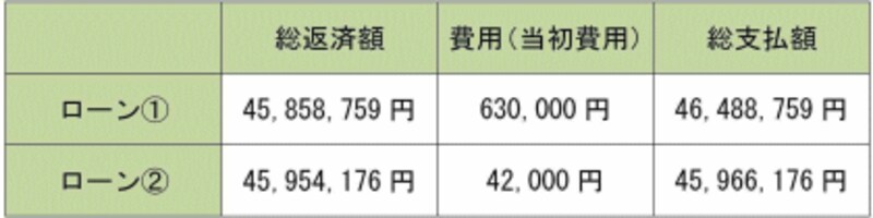 ローン1の方が金利は低いものの、費用を考慮すると、ローン2の方が実質的なコストが低くなることがお分かりいただけるでしょう。