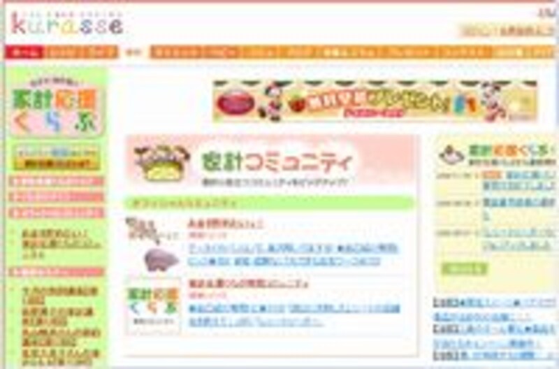 Kurasseは、ダイエットや料理レシピ、子育てなど暮らしに役立つさまざまなテーマのブログやコミュニティがあるサイトです。「家計応援くらぶ」は、家計に関するコミュニティをピックアップ。「お金を貯めたいっ!」のコミュニティでは、貯蓄を増やすための在宅ワークに関する情報や、投資、節約などのトピックがにぎわっています。また、プロによる家計講座もあるので、読むだけでも勉強になりますよ。