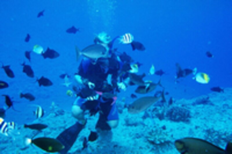 | ハワイの生活にも慣れ、ダイビングやフラダンスなども楽しんでいる木村公美さん。充実した笑顔ですね。 |