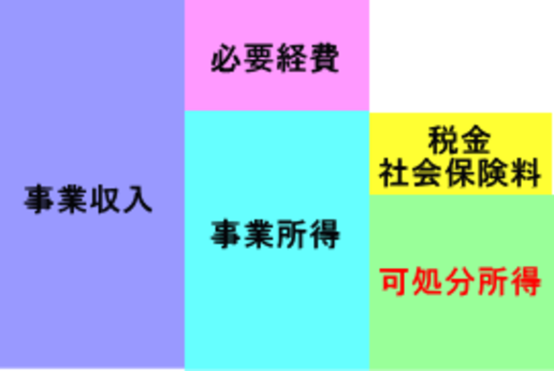 収入は、可処分所得を記入します。会社員の場合は、給与収入から税金(所得税と住民税)と社会保険料(厚生年金、健康保険、介護保険※、雇用保険の保険料)を差し引いた金額が可処分所得になります。自営業者やフリーランスの場合は、事業収入から必要経費を差し引いて事業所得を計算し、事業所得から税金と社会保険料を差し引いた金額が可処分所得となります。