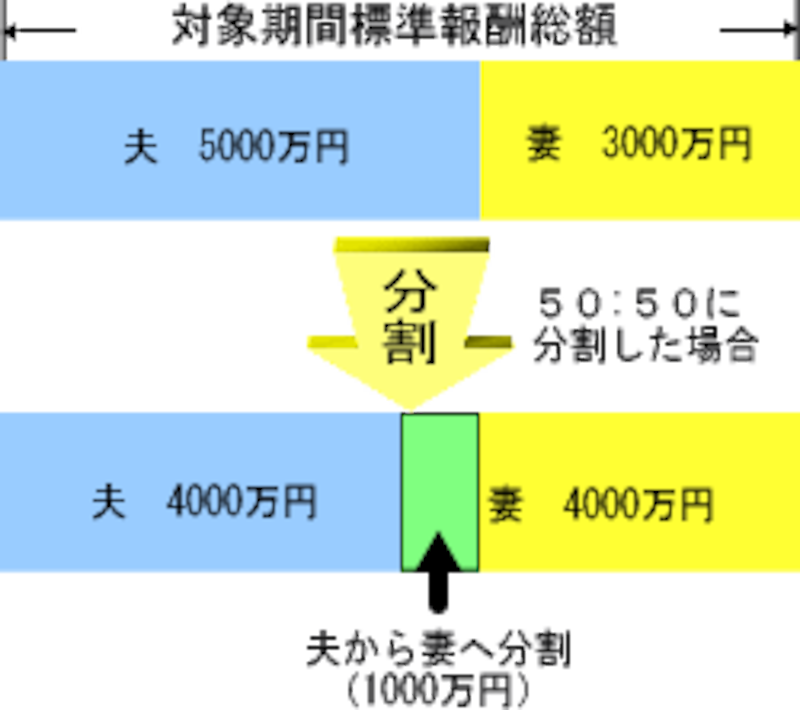 | ※上限は分割を受けた妻の対象期間標準報酬総額が、夫婦の対象期間標準報酬総額を足した合計額の2分の1(4000万円)まで |