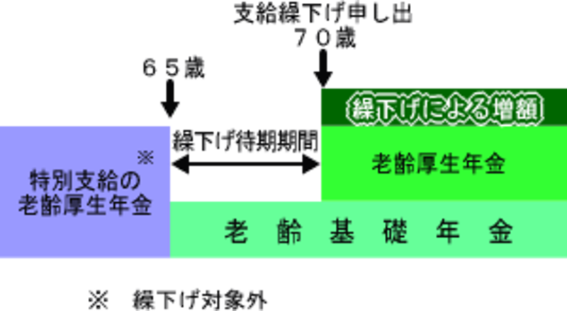 ※原則65歳からの年金の支給開始を最低1年間遅らせないと、支給繰下げによる年金の増額は行われません。