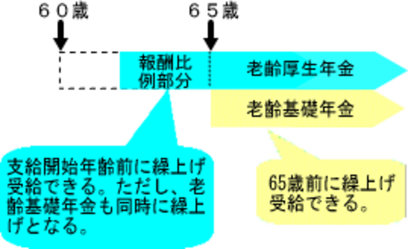 昭和41年4月2日以降生まれの女性 - 65歳前に老齢厚生年金と老齢基礎年金の全部の支給繰上げができるが、同時に繰上げ請求しなければならない。