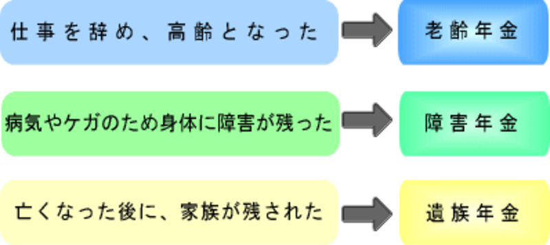 年金保障の三本柱は、「老齢・障害・死亡」。以下のような年金が、「もしも」や「安心」のために機能します。![]() |