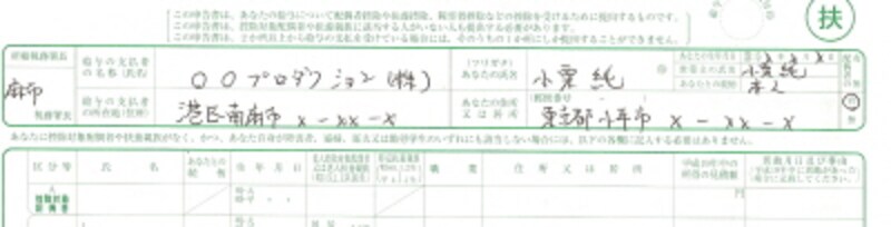 ポイントは配偶者の有無の有に印がつき、さらに、控除対象配偶者にも名前の記載がはいっているからです。控除対象配偶者に名前を記載するということは、自身の配偶者が控除対象配偶者であることをアピールすることと一緒なのです。