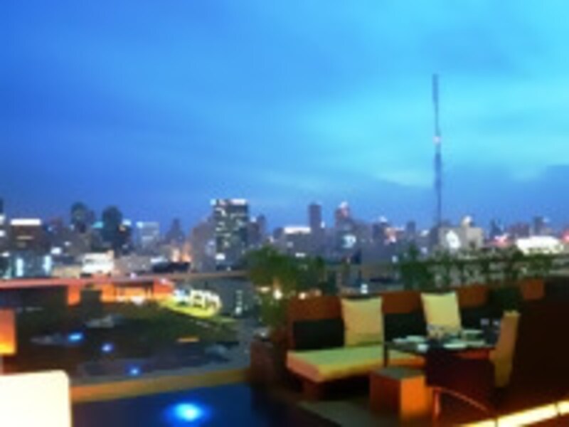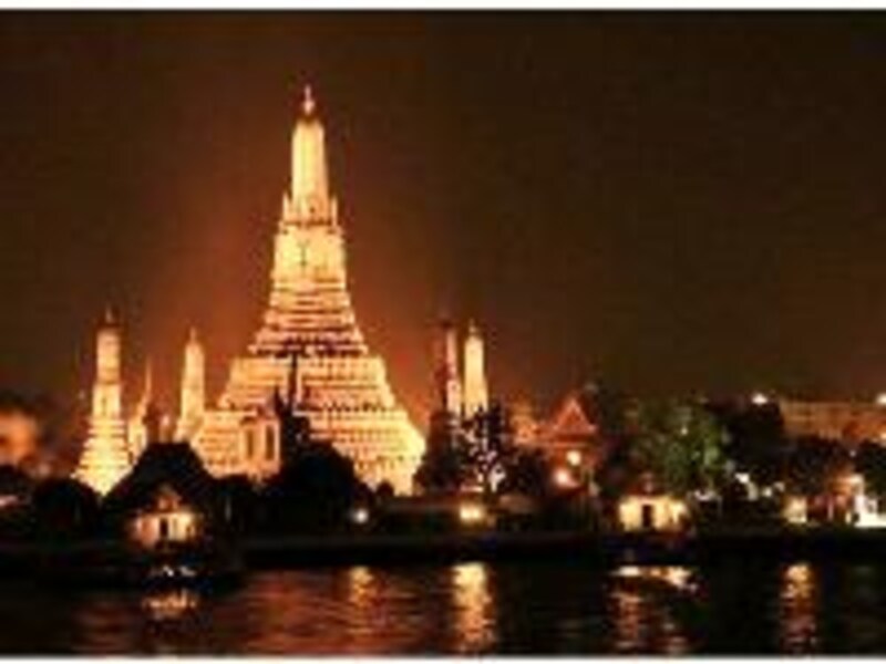 | 夜は目の前のワット・アルン(暁の寺)がライトアップされとても幻想的 |