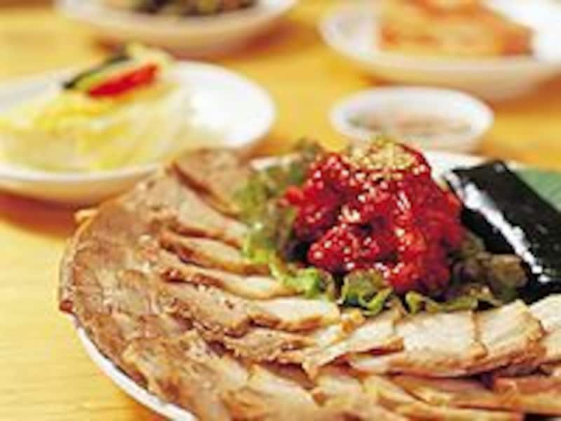 また、同じく豚肉を茹でた料理にポッサムがあります。油はしっかり落ちているので、さっぱりとした口当たり。キムチととても相性が良く、ポッサムとキムチを一緒に頬張るのが美味しい食べ方。整腸作用やダイエット効果のあるキムチと、コレストロールが低く、ビタミンB&たんぱく質たっぷりの豚肉パワーで疲れた体も元気に回復です。