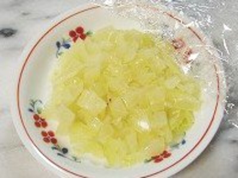 2.玉ねぎをみじん切りにし、耐熱皿に入れラップをして電子レンジで30~40秒加熱。ラップを少し開け、粗熱が取れたら再度加熱。これを2~3回繰り返し、玉ねぎが半透明になったら、ラップをはずして冷ましておく。(フライパンで炒めてもOK)