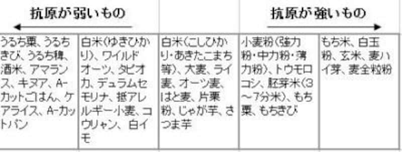 | [参考]穀類・イモ類のアレルギー抗原表 |