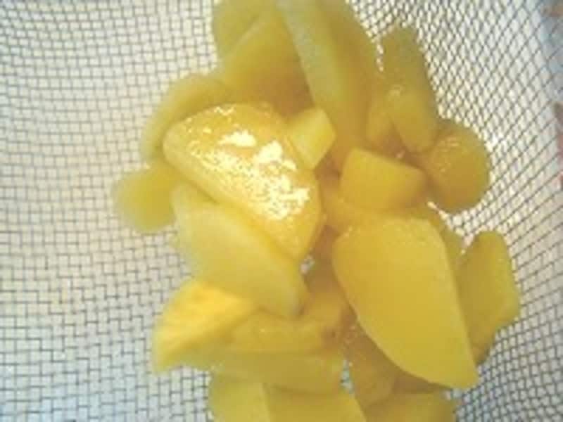 5.やわらかくなるまで煮えたらザルにあげ、水を切り粗熱をとります。
