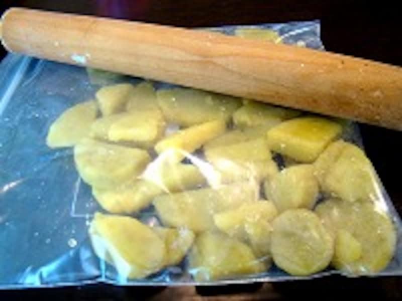 6.粗熱をとったさつまいもを密閉できる厚手ビニール袋(冷凍用が好ましい)にいれます。