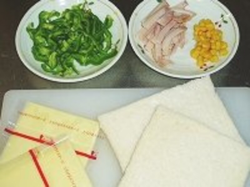 今回は、ピーマンの他に、ロースハム、チーズを入れてみましたが、千切りキャベツやにんじんなど炒めてから入れてもいいでしょう。