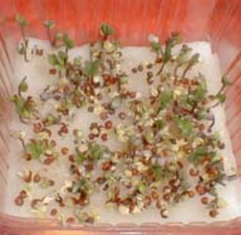 (最初に述べましたように、発芽するには、酸素が必要です。水につかった状態では、空気に触れませんので種子が呼吸できなくなり芽を出しません。水を入れすぎないように気をつけてください。