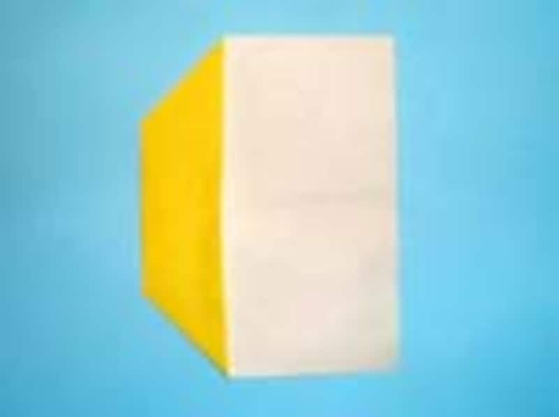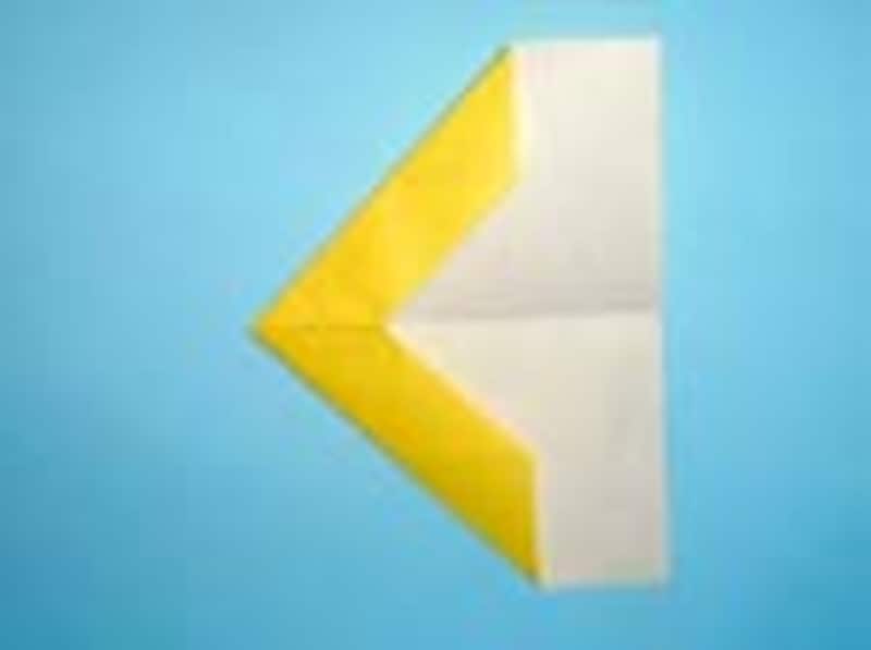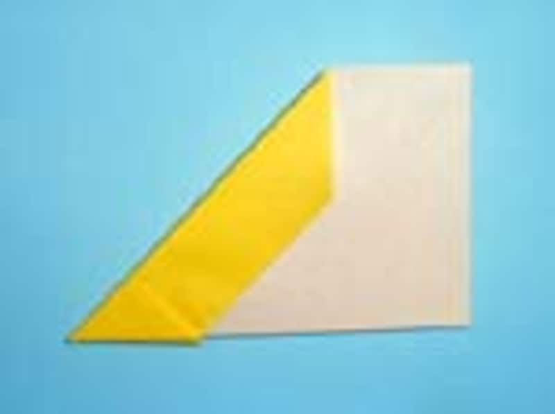 2.黄色の三角部分の半分を 裏側に折り返す |