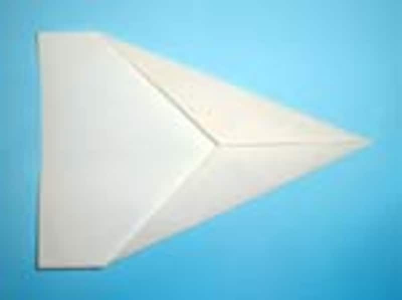 | 5.さらに半分になるように 手前と向こう側に折り下げる  |