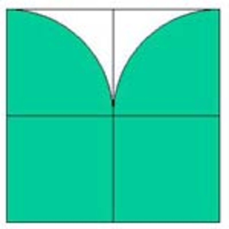 (1)(3)(4)は比較的4等分しやすいのですが、(2)の形は外枠の正方形の辺の中点がわかりにくいので、うまく4等分できる子どもは多くありません。