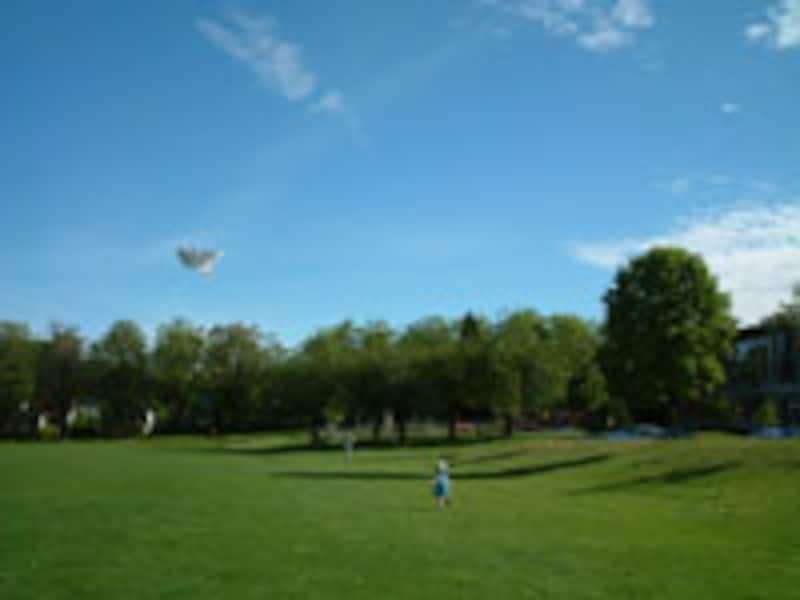 ← まず、何の変哲も無いごく普通の公園が素晴らしい。広々とした芝生広場に、涼しい木陰、子どもたちのための遊具も安全設計。リスが走り回る姿を見ることも珍しくありません。こういった普通の公園での~んびりとお弁当を食べるだけでも、都会の喧騒を忘れて充分にリラックスできます。