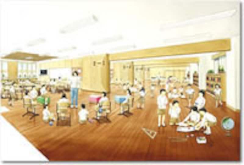 | 通常の普通教室の約2倍の広さを持つオープンスペース型教室 |