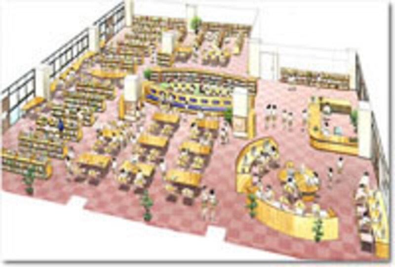 | 小学校の図書館としては国内でも最大級、3万冊以上の蔵書スペースを持つメディアセンター |
