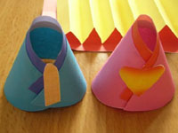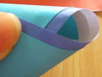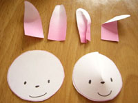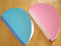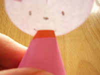 顔の切り込みを入れた部分に糊を付け、立体的になるように張り合わせます。