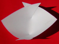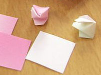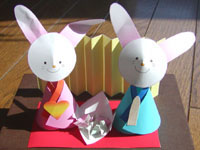 あられの紙を適当な大きさに切り離します。ひなあられの皿は、写真のように角から対角線に切込みを入れます。 適当な大きさに切り分けた紙を指先で小さくまるめて、あられを作ります。 あられの皿は、切込みを入れた部分が少し重なるようにして、貼り合わせます。 出来上がりです。 >>次は、ひと工夫した、楽しいオリジナルびなのご紹介です。前のページへ1234次のページへ