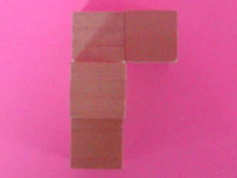 実際に積み木で立体を作り、真上から、真正面から見てみましょう。