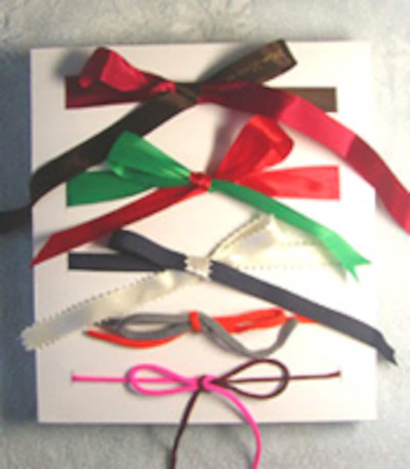 ・左右は、結び方が分かりやすいように、色の違うリボンや紐にするが、太さは左右同じぐらいのものに合わせる