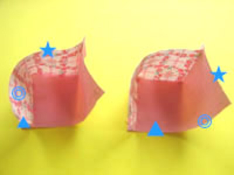 ・同じものを2つ作り、★と★、◎と◎の順に縫い合わせていく。