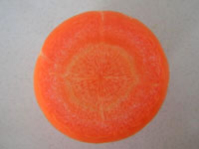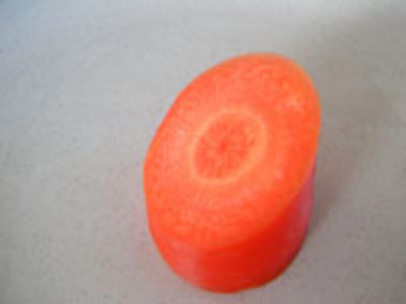 ニンジンを円柱に切ってみましょう。そして、底面に平行に切ると、断面は円形になり、底面に対し角度をもたせて切ると、断面図は楕円形になります。![]() |