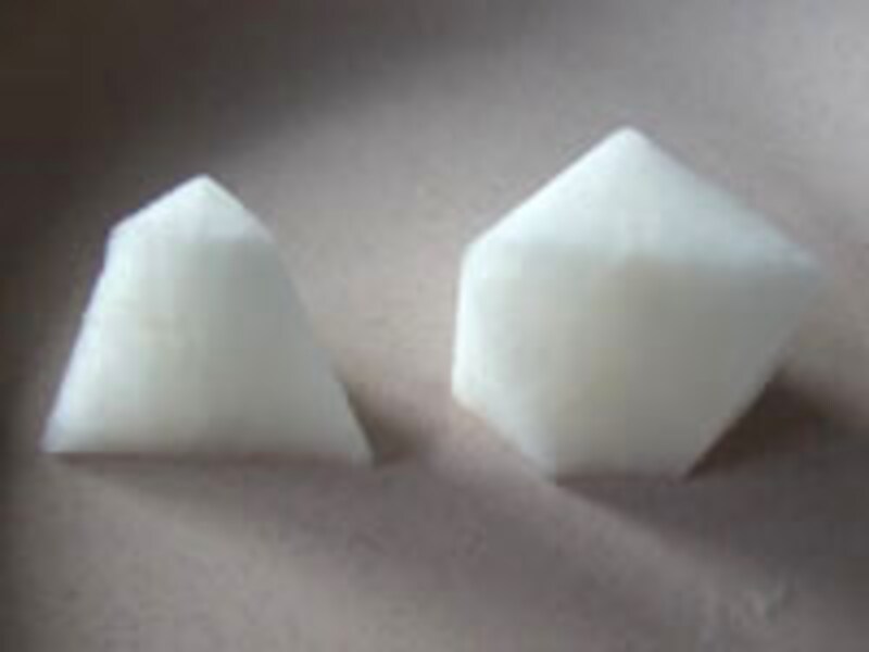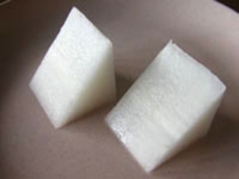 | 立方体に切った大根 | 断面図は長方形 切り取られた形は三角柱 |