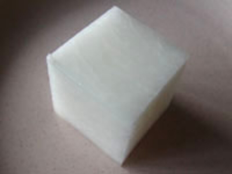 まず、大根を立方体に切ります。今回は、先ほどご紹介した入試問題に合わせて立方体の大根を切ってみましょう。