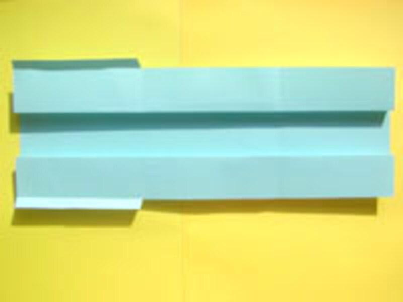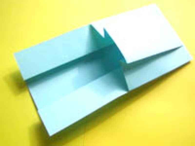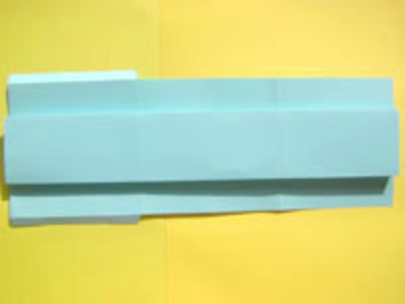 ・図のように上から山折り、谷折り、山折り、山折り、谷折り、山折りをする。
