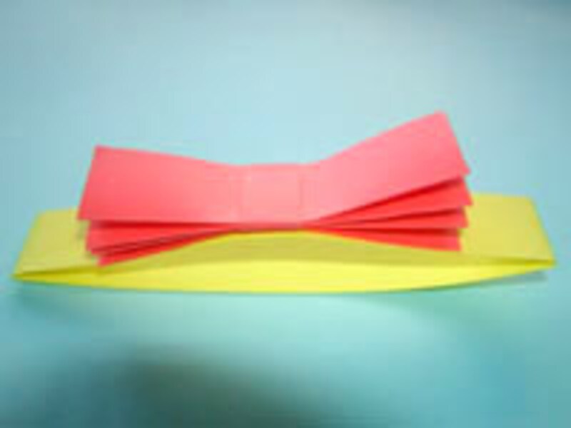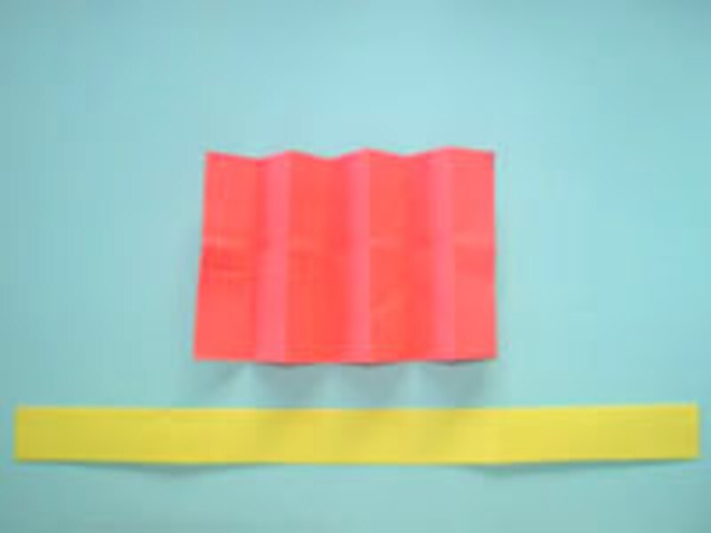 ・16cm×7.5cmのオレンジ色の色画用紙を2cm幅のびょうぶ折りにする。