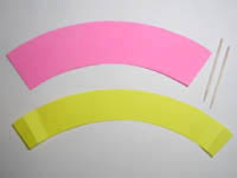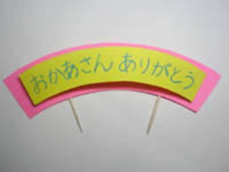 ・細い方の画用紙にメッセージを書き、両サイドを谷折りと山折りにし、飛び出すように貼り付けます。