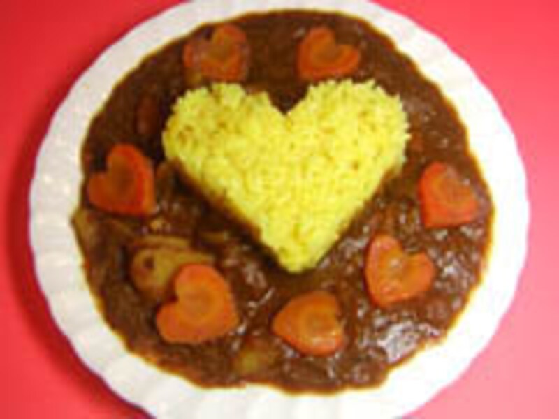 米3合に通常の分量の水を入れてから、ターメリック小さじ1杯とバター大さじ2杯を入れ、普通に炊く。ターメリックは、スパイスコーナーで一瓶100円程度で購入できます。ちょっと手をかけるだけで、見た目も味も、かなりおしゃれになります。ハート型カレーの作り方手順4:ライス用のハート型の型抜きを作る
