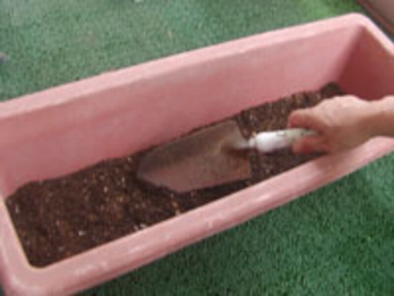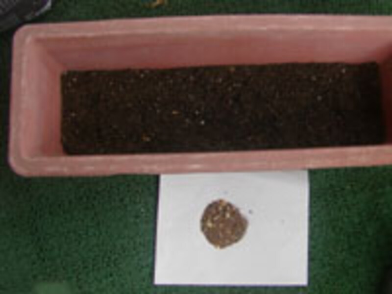 | プランターの下にあるのが20gの肥料。思ったよりかなり少量 |