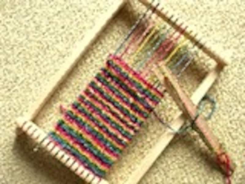 | 縦糸を張ってから、横糸で織っていきます。 |